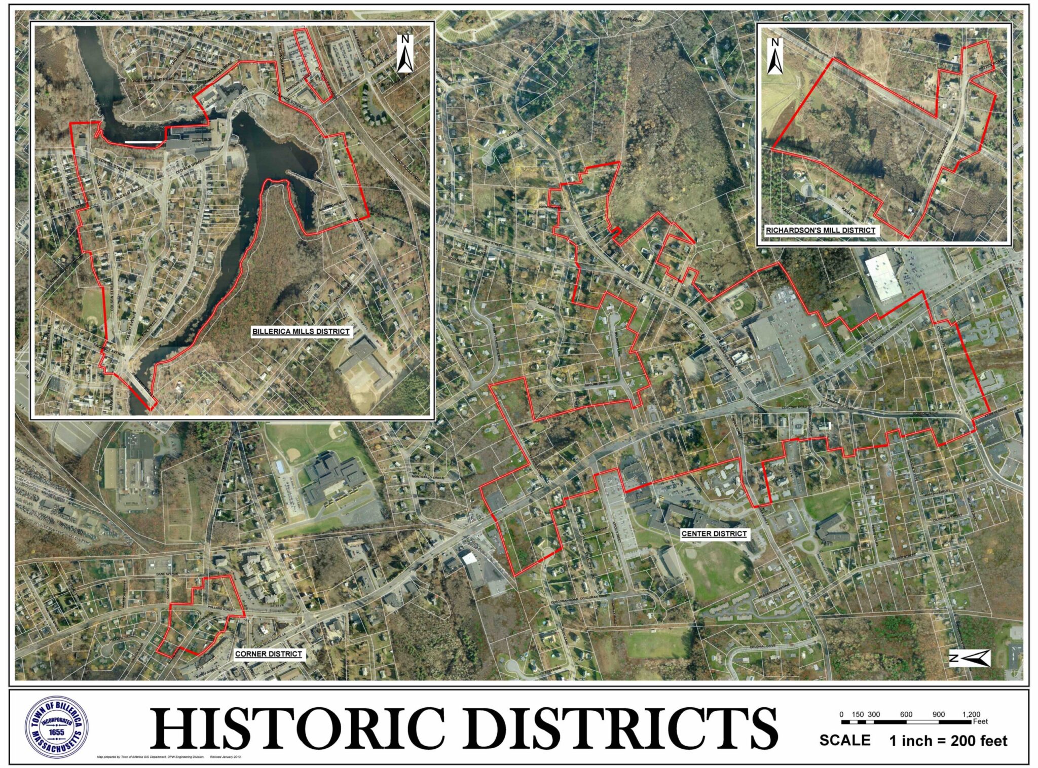 The Historic Districts Commission was established under the provisions of the Massachusetts General Laws Chapter 40C to oversee development with the Town of Billerica’s historic districts. The four districts are known as the Center District, the North Billerica Mills District, the Corner District, and the Richardson’s Mill District.