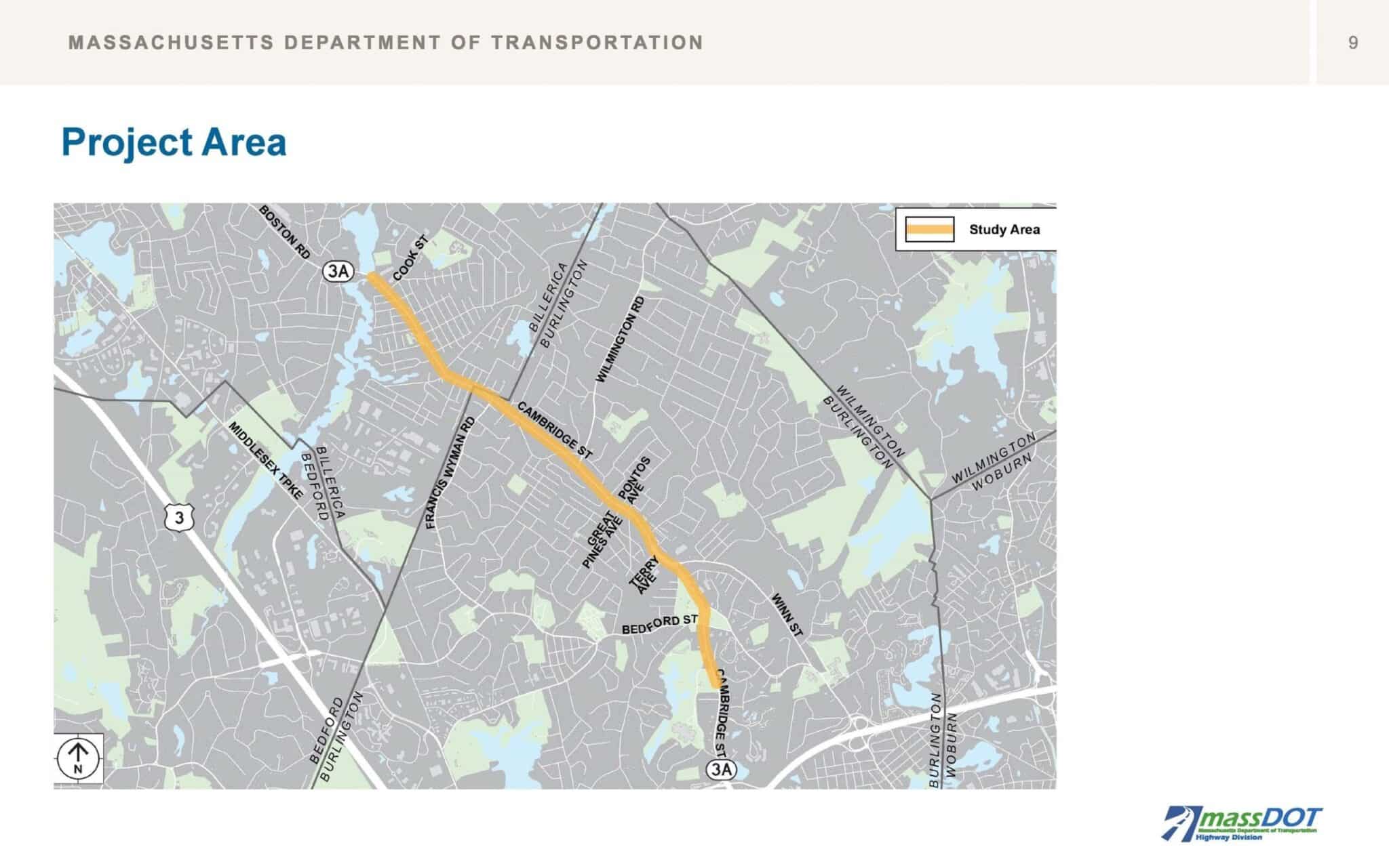Intersection Improvements Project at Boston Road, Lexington Road, and Glad Valley Drive (the Project) along an approximately 3,840-foot (0.7 miles) stretch of Boston Road (Route 3A) centrally located in Billerica, Massachusetts. The Boston Road corridor and the intersections of Lexington Road and Glad Valley Drive have safety and operational deficiencies which require improvements for safe and efficient operation for all users, including motor vehicles, bicyclists, and pedestrians. While road work is being performed the Town will also replace the water main that runs along the project length.